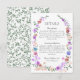 Colourful peach, lilac, blue & mauve rose garden vine with leafy green details is perfect for a details card or rsvp card.