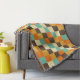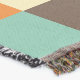 A pattern made up of squares of five different colours which have been arranged in 4x4 tiles. However the 4x4 tiles on the right are reversed and inverted creating a more interesting overall design. This design is created from a full sized vector graphic specifically for this type of blanket. The colour squares at the edges are therefore fully extended into the bleed area ensuring there can be no unwanted pattern edges in the final product.