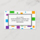 This card has been covered in a graphic featuring rich, bright colourful squares. The palette features green, dark purple, plum, blue and tangerine orange over an editable white background; change this to any colour you prefer. A white badge that's outlined in double slim black borders masks the centre of the card on both sides, providing space for your details to show up perfectly. Text appears in black on both sides; you can change this, along with fonts and sizes, if you prefer. All details were added separately and left unlocked to give you maximum design control. You might have fun with this design by accessing the editing tools and rotating, re-sizing or otherwise re-positioning the background artwork, having the squares appear precisely where you prefer. Maybe your kids will even want to help! Please don't hesitate to reach out if you need assistance. // Designed by Melody Watson for Paper Muserie.