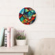 Colourful Stained Glass Abstraction Large Clock