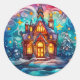 Colourful Stained Glass Christmas Tree and House Classic Round Sticker