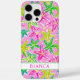 Customise this colourful watercolor starfish in greens and pinks iPhone 15 pro max case with your your name in a trendy modern CAP font in pink on white. It's so modern and trendy!