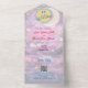 Make your wedding truly unforgettable with this vibrant pastel celestial all-in-one invitation. Featuring dreamy clouds, a glowing crescent moon, golden stars, and a whimsical sunset sky, this folded design includes everything you need — wedding details, RSVP card, return address, and a QR code for your website.