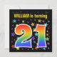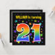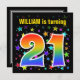 This exciting, fun, vibrant birthday party invitation design features a colourful stars pattern, along with the number "21" having a multicolored rainbow inspired spectrum or gradient pattern. The name on the front can be personalised. The back features customisable details about the party. Birthday party invitations like this might be sent to potential attendees for a birthday party being held to celebrate somebody’s twenty first birthday. [~Z0000349]