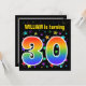 This fun, vibrant, and exciting birthday party invitation design features a colourful stars inspired pattern, along with the number "30" having a multicolored rainbow inspired spectrum or gradient pattern. The name on the front can be customised. The back features personalised information about the party. Birthday party invitations like this might be sent to invite guests to a birthday party being held to celebrate somebody’s thirtieth birthday. [~Z0000349]