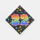 This exciting, fun, and vibrant paper napkin design features numerous colourful star shapes, along with the number "32" featuring a multicolored rainbow inspired spectrum gradient pattern, on a black coloured background. Paper napkins like this might be fun to use at a party when celebrating somebody’s thirty second birthday, or perhaps a couple’s thirty second wedding anniversary, or some other 32nd event. [~Z0000346]