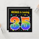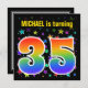 This fun, exciting, and vibrant birthday party invitation design features a colourful stars pattern, along with the number "35" having a multicolored rainbow like spectrum or gradient pattern. The name on the front can be personalised. The back features customisable details about the party. Birthday party invitations like this might be used to invite guests to a birthday party being held to celebrate somebody’s thirty fifth birthday. [~Z0000349]
