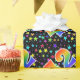 This exciting, fun, and vibrant wrapping paper design features a colourful star field pattern, along with the number "42" having a multicolored rainbow spectrum like gradient pattern, on a black coloured background. Wrapping paper like this might be a fun way to wrap presents or gifts being given for somebody’s forty second birthday, or perhaps for a couple’s forty second wedding anniversary, or some other 42nd event. [~Z0000345]