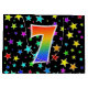 This exciting, fun, and vibrant gift bag design features many colourful star shapes, along with the number "7" featuring a multicolored rainbow inspired spectrum gradient pattern, on a black coloured background. A gift bag like this might be a fun way to wrap presents or gifts being given for somebody’s seventh birthday, or perhaps for a couple’s seventh wedding anniversary, or some other 7th event. [~Z0000347]