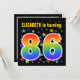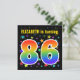 This fun, vibrant, and exciting birthday party invitation design features a colourful star field inspired pattern, along with the number "86" having a multicolored rainbow like spectrum or gradient pattern. The name on the front can be customised. The back features customisable details about the party. Birthday party invitations like this might be sent to invite guests to a birthday party being held to celebrate somebody’s eighty sixth birthday. [~Z0000349]