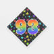 This exciting, fun, and vibrant paper napkin design features a colourful star shapes pattern, along with the number "93" featuring a multicolored rainbow spectrum like gradient pattern, on a black coloured background. Paper napkins like this might be fun to use at a party celebrating somebody’s ninety third birthday, or perhaps a couple’s ninety third wedding anniversary, or some other 93rd event. [~Z0000346]