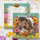 Steampunk metal, flowers and gears and flowers in yellow and pink wedding invitation. Weathered wood in pink, yellow and teal. Upload your favourite picture in the personalise area and edit the text on the back to add your own wedding info.