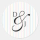 Colourful Stripe Monogram Script Ampersand Wedding Classic Round Sticker.