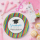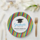 Colourful Stripes and Hat Personalised Graduation Paper Plate