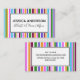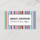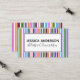 This card has been covered in a graphic featuring rich, bright colourful stripes . The palette features turquoise, green, orange, pink, purple, red and white. A white badge that's outlined in a slim black border masks the centre of the card on both sides, providing space for your details to show up perfectly. Text appears in black on both sides; you can change this, along with fonts and sizes, if you prefer. All details were added separately and left unlocked to give you maximum design control. Please don't hesitate to reach out if you need assistance. // Designed by Melody Watson for Paper Muserie.