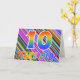 The front of this vibrant, exciting, and fun birthday greeting card design features a multicolored stripes pattern, along with the message "10 years old!" having a multicolored rainbow inspired gradient pattern. The inside features a custom greeting message, or could perhaps be cleared and left blank if a message is to be written by hand instead. A greeting card like this might be a fun way to acknowledge somebody’s tenth birthday. [~Z0000351]
