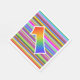 This eye-catching, vibrant, and exciting paper napkin design features a multicolored striped pattern, along with the number "1" having a multicolored rainbow inspired gradient pattern. Paper napkins like these could be fun to use at a party being held to honour somebody’s first birthday, or perhaps a couple’s first wedding anniversary, or some other 1st event. [~Z0000352]