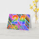 The front of this eye-catching, vibrant, and fun birthday greeting card design features a stripes pattern with lots of colours, along with the message "24 years old!" featuring a multicolored rainbow inspired gradient pattern. The inside features a customisable greeting message, or could perhaps be cleared and left blank if a message is to be written by hand instead. A greeting card like this might be a fun, happy way of sending a greeting message to somebody who is celebrating their twenty fourth birthday. [~Z0000351]
