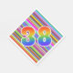 This exciting, eye-catching, and fun paper napkin design features a multicolored stripes pattern, along with the number "38" having a multicolored rainbow inspired gradient pattern. Paper napkins like these might be fun to use at a party being held to commemorate somebody’s thirty eighth birthday, or perhaps a couple’s thirty eighth wedding anniversary, or some other 38th event. [~Z0000352]