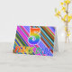 The front of this vibrant, exciting, and eye-catching birthday greeting card design features a colourful stripes pattern, along with the message "5 years old!" having a multicolored rainbow like gradient pattern. The inside features a custom greeting message, or could perhaps be cleared and left blank if a message is to be written by hand instead. A greeting card like this could perhaps be a fun way to acknowledge somebody’s fifth birthday. [~Z0000351]