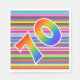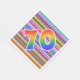 This vibrant, eye-catching, and exciting paper napkin design features a pattern of colourful stripes, along with the number "70" featuring a multicolored rainbow like gradient pattern. Paper napkins like these could be fun to use at a party being held to honour somebody’s seventieth birthday, or perhaps a couple’s seventieth wedding anniversary, or some other 70th event. [~Z0000352]