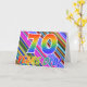 The front of this vibrant, eye-catching, and exciting birthday greeting card design features a colourful stripes pattern, along with the message "70 years old!" having a multicolored rainbow like gradient pattern. The inside features a customisable greeting message, or could perhaps be cleared and left blank if a message is to be written by hand instead. A greeting card like this might be a fun, happy way of sending a greeting message to somebody who is celebrating their seventieth birthday. [~Z0000351]