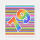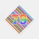 This fun, exciting, and eye-catching paper napkin design features a colourful striped pattern, along with the number "79" having a multicolored rainbow like gradient pattern. Paper napkins like these could be fun to use at a party being held to celebrate somebody’s seventy ninth birthday, or perhaps a couple’s seventy ninth wedding anniversary, or some other 79th event. [~Z0000352]