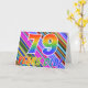 The front of this eye-catching, exciting, and fun birthday greeting card design features a colourful stripes pattern, along with the message "79 years old!" having a multicolored rainbow like gradient pattern. The inside features a customisable greeting message, or could perhaps be cleared and left blank if a message is to be written by hand instead. A greeting card like this could perhaps be a fun way to acknowledge somebody’s seventy ninth birthday. [~Z0000351]