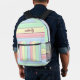 "Make a bold statement with this colourful stripes backpack, featuring a playful design of rustic soft pastel horizontal lines in shades of blue, green, yellow, and pink. Perfect for back-to-school or everyday use, this backpack is a trendy and vibrant choice for students who love to stand out. The unique striped pattern is ideal for adding a pop of colour to your outfit, making it both a fashionable and functional accessory.