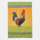 Colourful Strutting Rooster Design Kitchen Towel, featuring an image from a photo of a Key West Rooster (by ©sjasis) against a sunburst background with polka dot and striped accents.