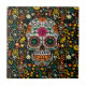 Colourful sugar Skull With Retro Flowers Backgroun Tile