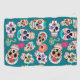 Bright images of sugar skulls make a fun pattern on this colourful and unique golf towel. There are several different skull images, all individual in various colours, and placed on a teal background. Be sure to see the additional sugar skull themed products, including club covers, in our store.