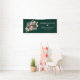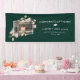 Colourful bright summer floral and greenery photo frame, graduation party banner. Features, emerald green background colour, graduation cap accent, template text lines for graduate's name, school/degree, graduation year and single front framed photo.