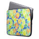 A very pretty sleeve to protect your laptop, with an orange and scarlet nasturtium all-over pattern on a blue background, with black binding.. Coordinates with Rickshaw Messenger Bag, also available from my store; from a watercolour design by Judy Adamson.