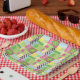 Colourful summer fruit pink green yellow mosaic paper plate