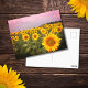 Enjoy this colourful photo of blooming sunflowers in Canfield, Ohio. This artistic photograph is filled with bright colours of yellow, green and pink, just in time for the harvest.