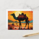 Camel in Desert with sunset background postcard. Easily customise the message for your needs.