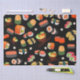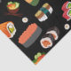 This design features a beautiful, colourful sushi on a contrasting black background.