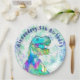 Let’s get this dinosaur 5th birthday party started with this fun colourful T-Rex dino watercolor painting in teal green, blue, aqua, purple and yellow hues on a splatter paint background. Modern blue typography just add your child’s name using the template to create a personalised Tyrannosaurus roar fifth birthday party paper plate. Original artwork by artist Catherine Sweetman.