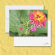 Colourful thank you card featuring a pink, yellow and orange flower in front of green leaves with the saying "thank you for helping me grow" shows appreciation for your child's teachers, bus driver, principal, nurse, counsellor, coach, lessons instructors, club advisers, and the many others who guide them throughout their school day and far beyond. On the back, a small dark green floral embellishment adds a bit of colour while also maintaining a large blank area for your personal note of thanks.