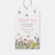 Bohemian, modern and elegant, this wedding thank you tag features a brightly coloured field of delicate summer wildflowers with butterflies, bumble bees and ladybugs.