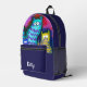 Pretty whimsical purple printed backpack, with fun graphics of a a trio of cats. Personalise the white text to suit your needs. Great gift idea for her.