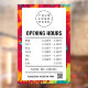 Colourful Tie Dye Opening Times With Qr Code Window Cling