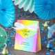 This elegant birthday thank you favour box features a tie die rainbow in pastel colours.