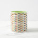 This colourful combo mug features a cute geometric pattern with tiny triangles in autumnal green and orange shades. Great gift idea for fall.