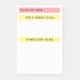 This colourful to do list features blocks of colours for text that you can personalise and a dot grid background (like that popular with bullet journals) to act as a guideline for writing and making marks.