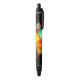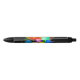 A cluster, bunch of bright and colourful toy balloons against the background of dark forest. Textured photography.