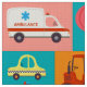 Colourful transport vehicle pattern fabric
