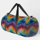 Colourful Trendy Rainbow Knitted Pattern Personalised Name Duffle Bag Gym Bag Sports Bag features a colourful abstract rainbow pattern in blue, purple,red, orange, yellow and green. Make a great gift for birthday, Christmas, holidays, Mother's Day and back to school. Perfect for sports, gym, travel and more. Designed by ©2024 Evco Studio www.zazzle.com/store/evcostudio