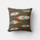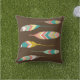 Add a decorative touch to your outdoor furniture with this brown tribal themed pillow. A colourful coral, teal, white, tan, mustard yellow and ivory coloured feather pattern, covers both sides of this brown UV treated pillow. Customise this pillow to add your own text.